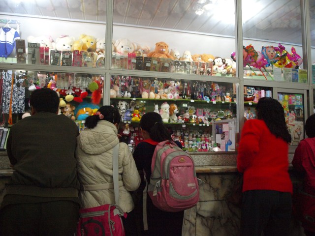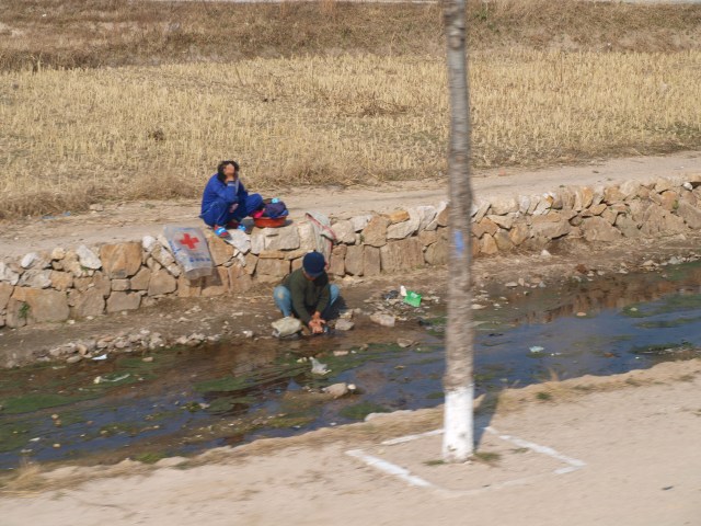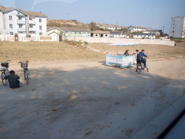 Capitalism in North Korea. This woman was selling little rice cake type things. Using DPRK currency and RMB.