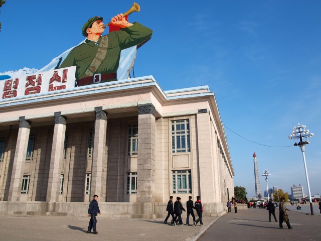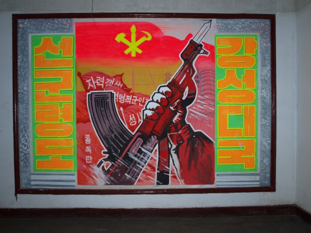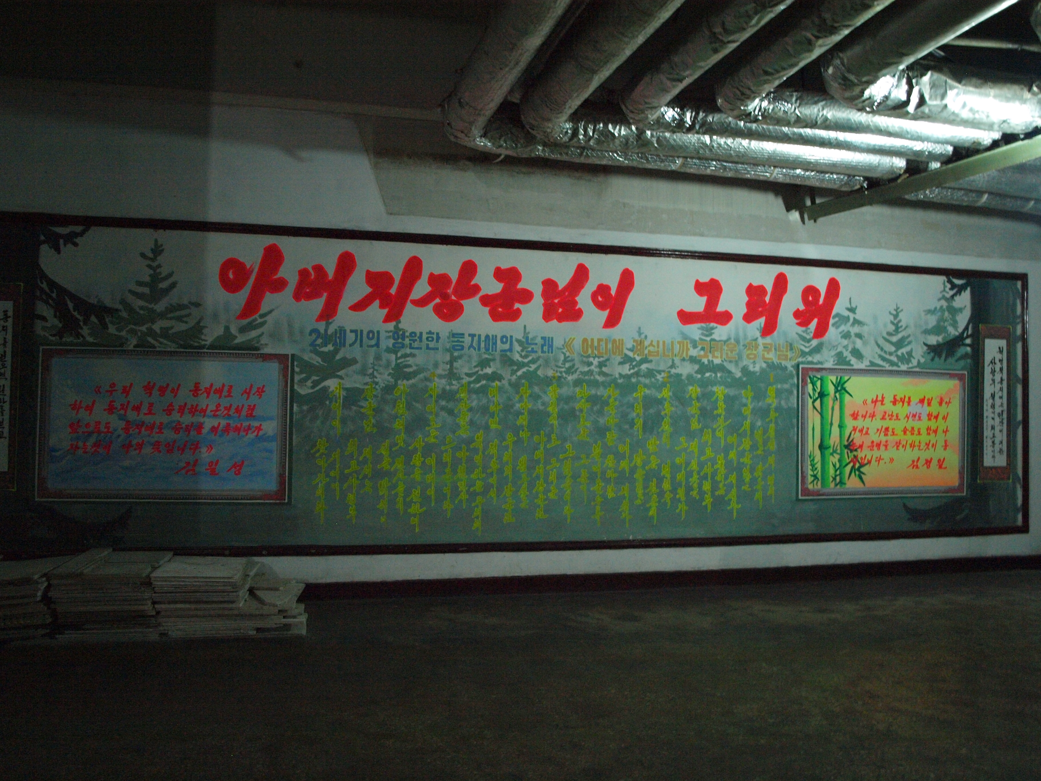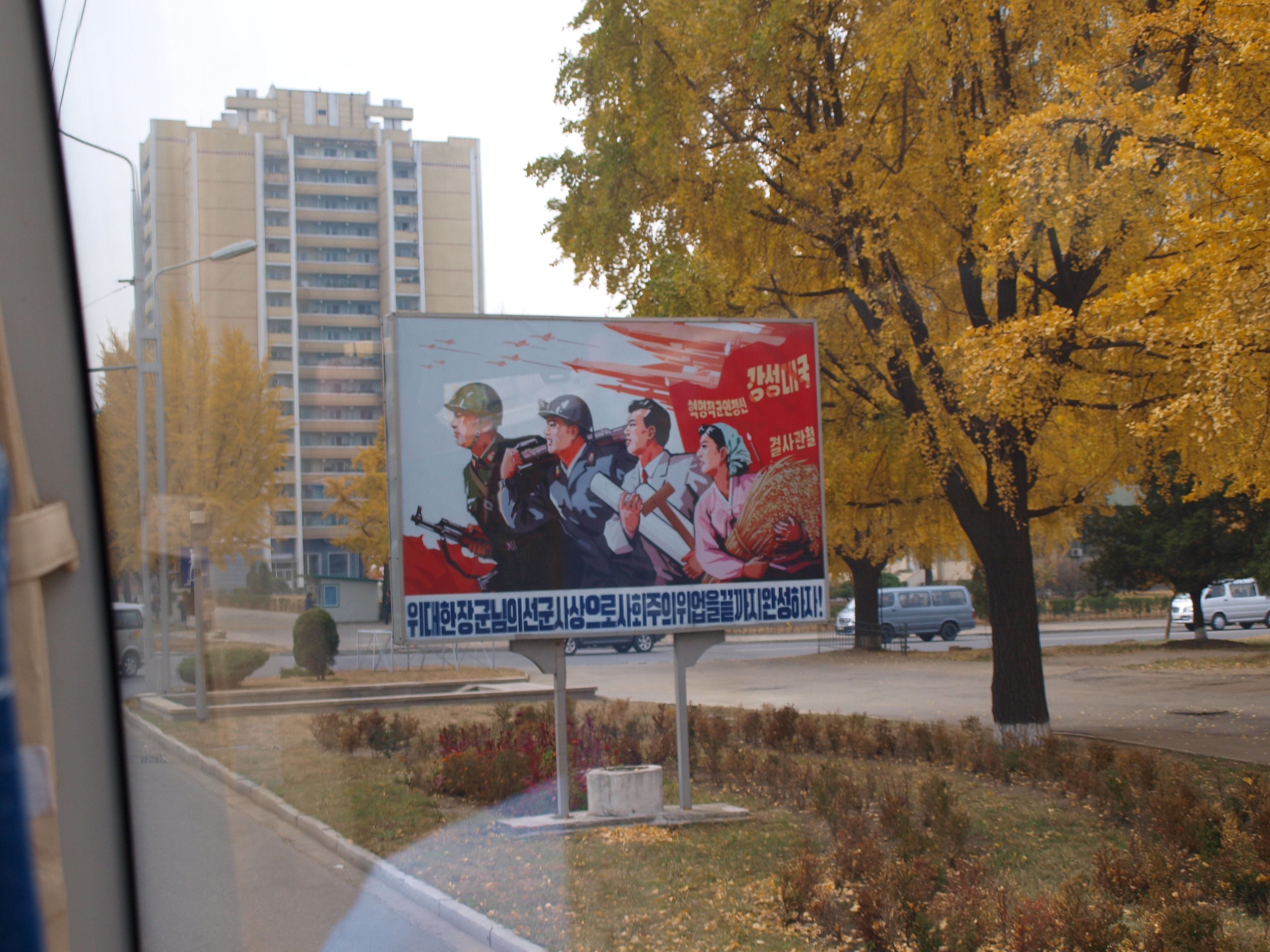 Just about the only advertising you’ll see in North Korea. Actually, there is one billboard advertisement for a Chinese-North Korea made truck. One.