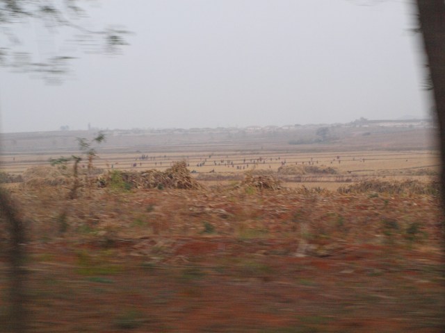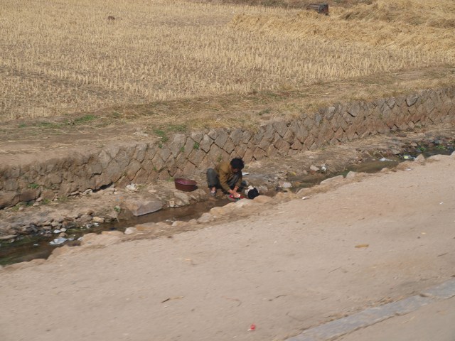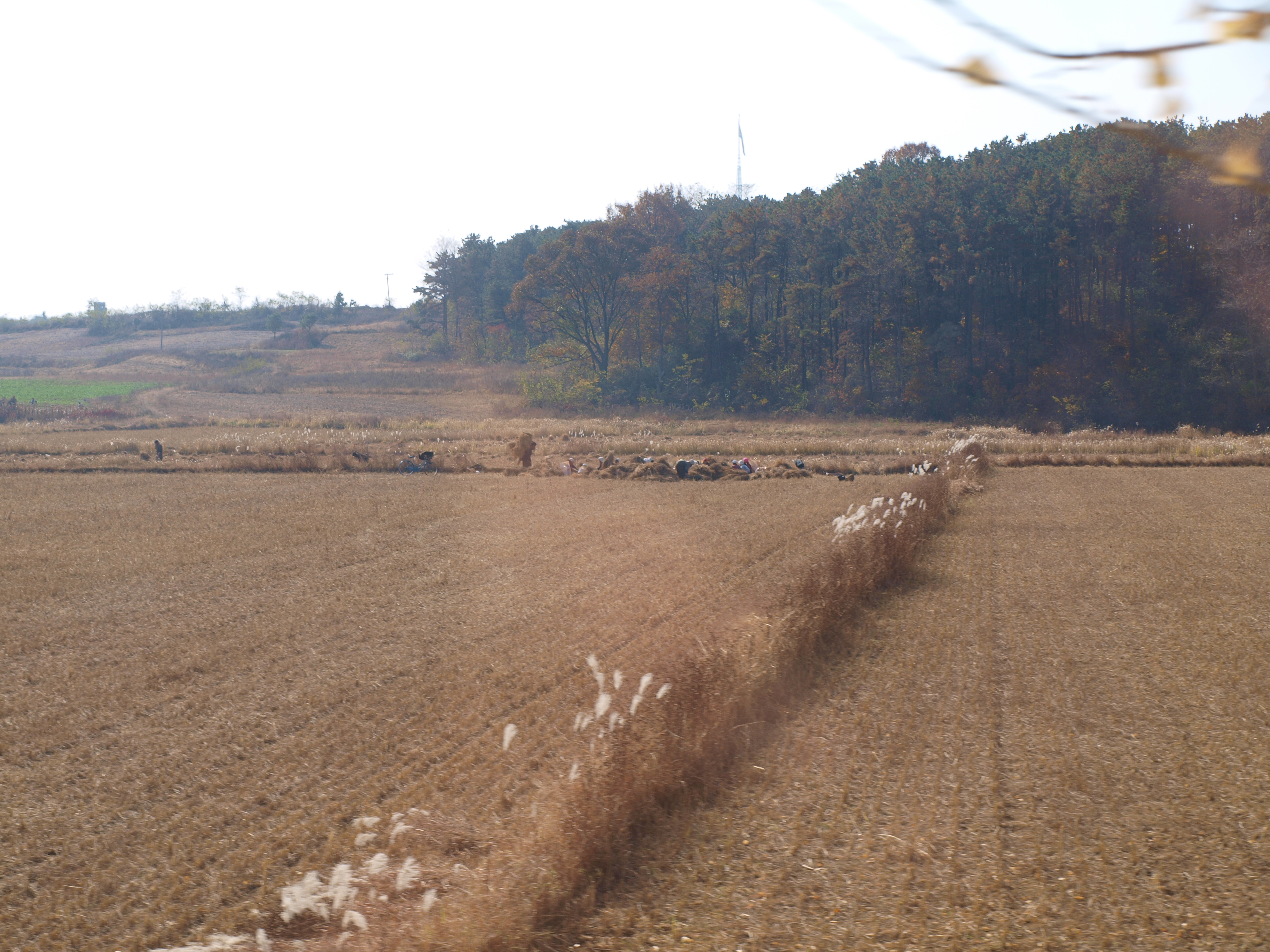 Near Kumchon. People farming manually. No tractors or power equipment.
