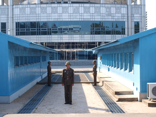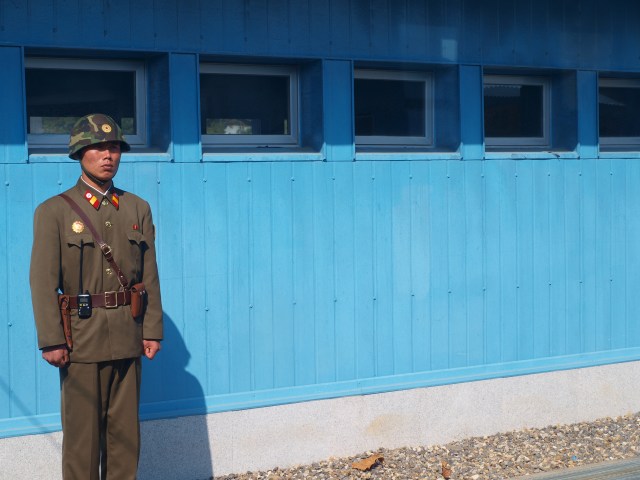At the DMZ with the DPRK’s tallest and fittest, South Korea is behind me.